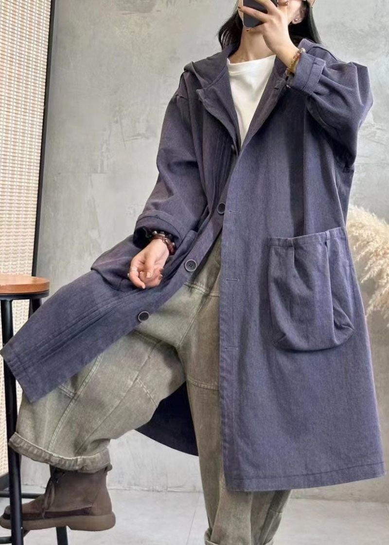 Vintage Svart Rynkig Knapp Hoodies Denim Trench Coats Fall