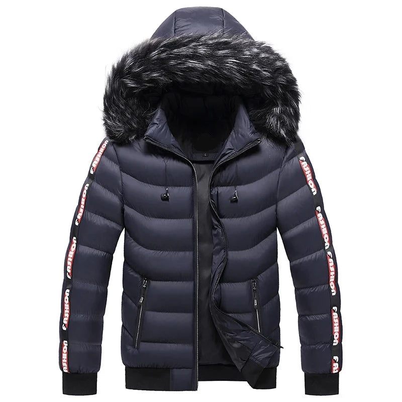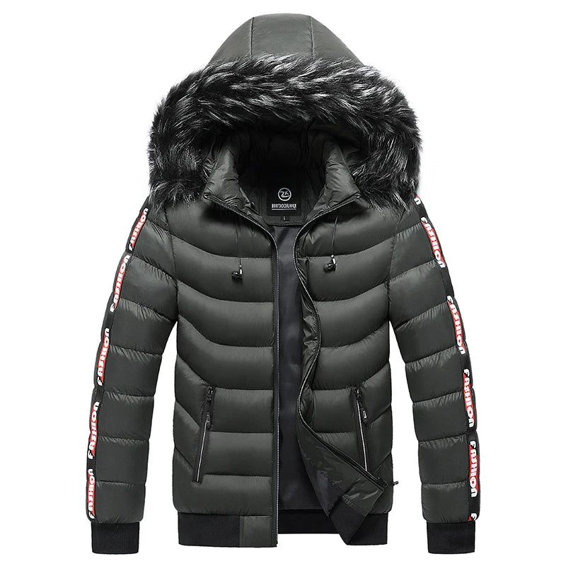 Vinter Herr Velvet Parka Coat Pälskrage Hooded Plus Thick Warm Jacka