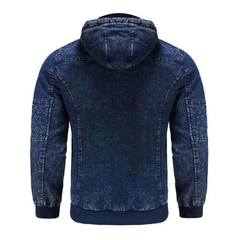 Vinter Jeansjacka Plus Sammet Varm Solid Tjock Fritidsjacka Herr Bomull Kappa Hooded