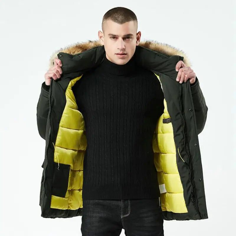 Vinterjacka Herr Ståkrage Man Parka Jacka Solida Tjocka Jackor Och Lång Coat Man Parkas