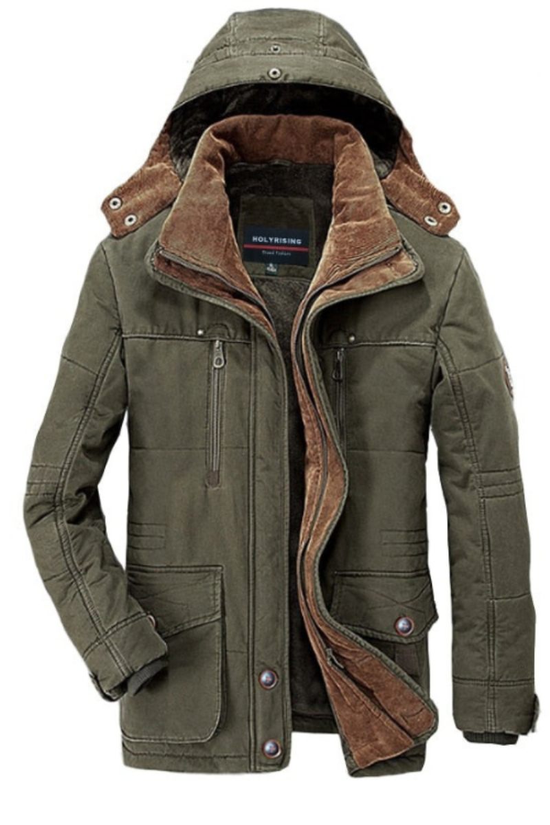 Vinterkappa Män Fleece Varm Bomull Parka Jacka Herr Tjock Parkas Män Vadderad