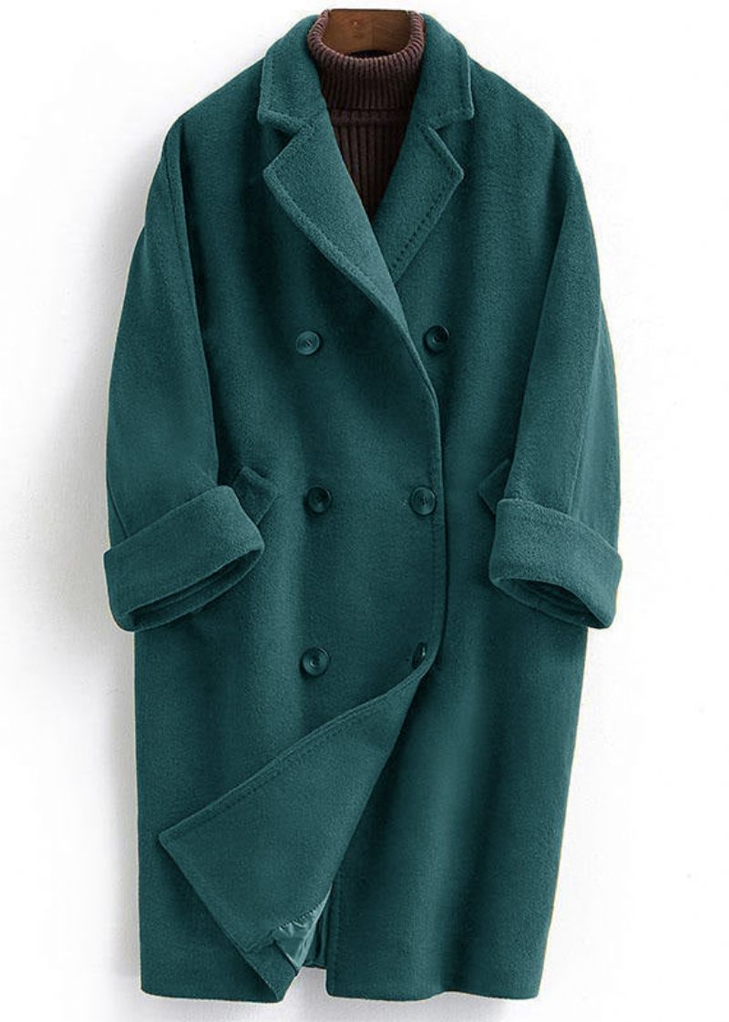 Woolen Coat Trendig Plus Size Lång Dubbelbröst Kvinnor Vinröd Kappa Naggad