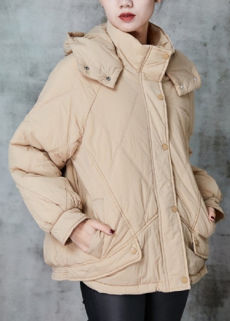 Kaki Loose Duck Down Puffer Jacka Hooded Winter