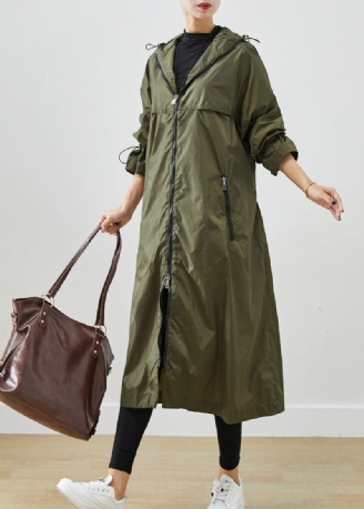 Plus Size Khaki Hooded Fickor Cotton Trench Fall