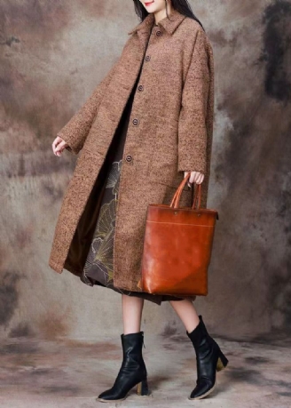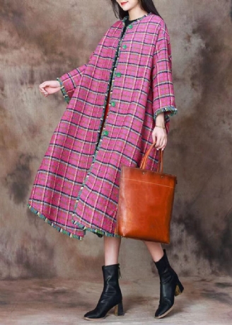 Plus Size Rosa Rutig Knapp Ull Långa Kappor Vår